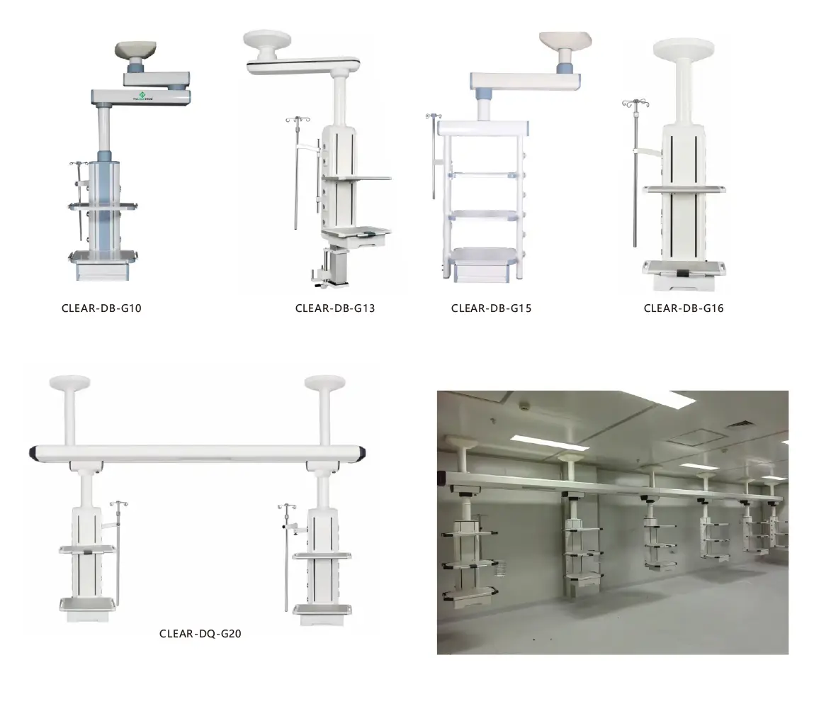 Weclearmed DB Medical Arm Suspension Tower Suspension Bridge kan dekke forskjellige behov, Clear-DB-GD10 dobbeltarmet motorisert anheng, Clear-DB-G13 enkeltarm nevrokirurgisk anheng, Clear-DB-G14 enkelt (dobbel) armanestesi pendant, Clear-DB-G15 single) endoskop. For mer informasjon, vennligst kontakt oss!